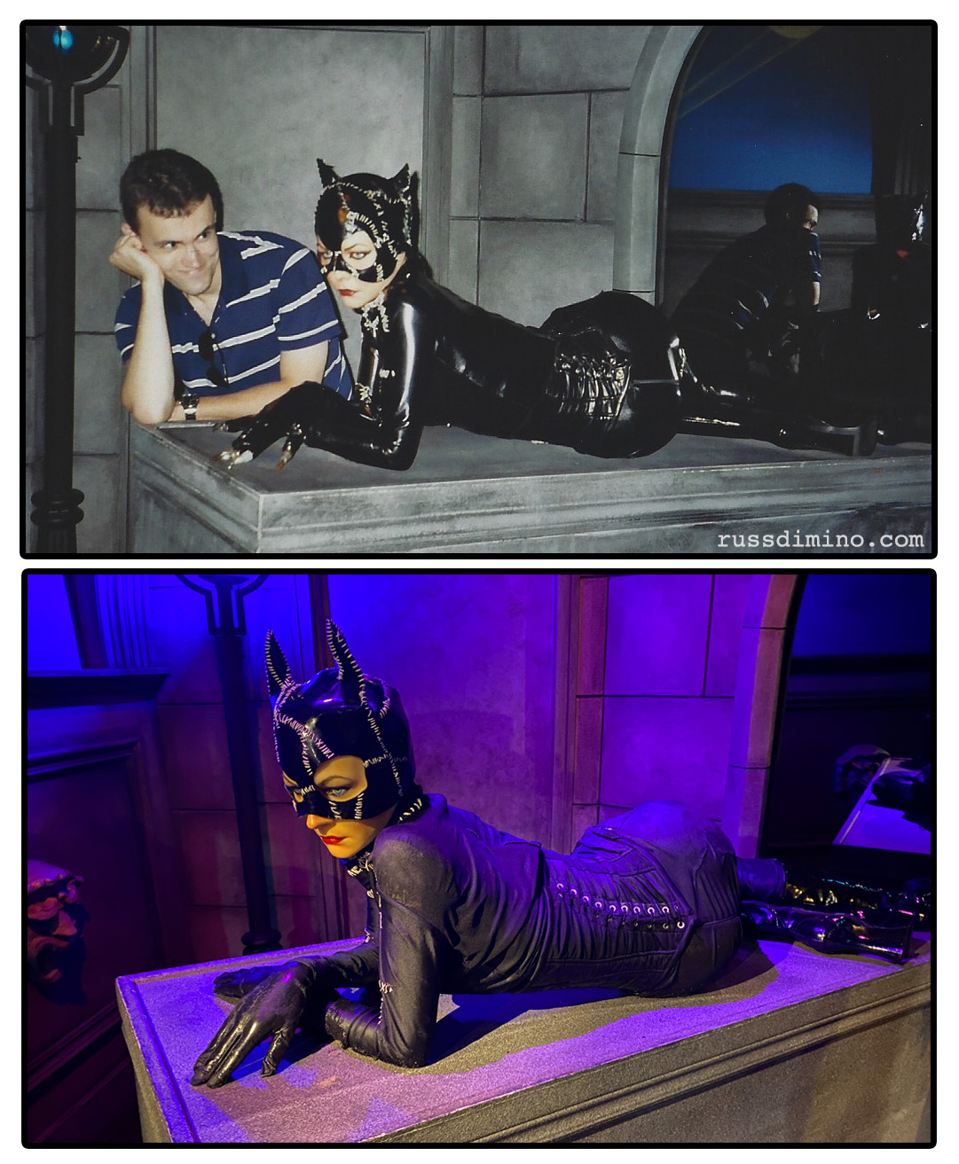 Michelle Pfeiffer’s Catwoman seems to have had a wardrobe downgrade over the years. The top photo, from 2007, has her in a very faithful vinyl version of her Batman Returns costume. In 2024 she is in a different mask (the “ears” are too long), and the rest of her costume is a different fabric that doesn’t match her mask or boots. Her pointy fingernails are gone as well. No clue what might’ve happened to Selina Kyle’s original threads. It’s a shame, because the old outfit was purrrfect.
