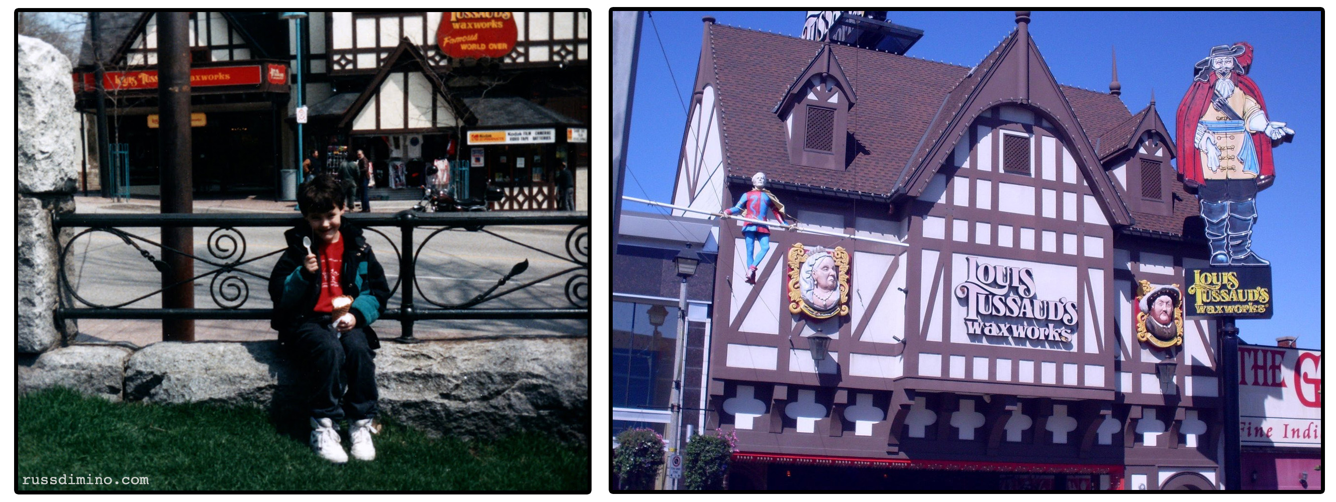 Here is a picture of me as a young tyke, circa 1991, where you can see the original Louis Tussaud’s on Clifton Hill in the background. Compare that to the picture on the right of the museum’s current location on Victoria Ave.